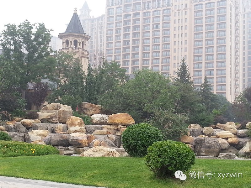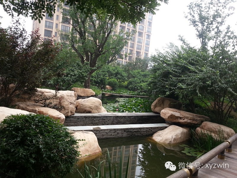 景观石作为效果的定睛材料,其设置没有一个固定的模式,主要体现于自然,美观。如图,其和铺装面的结合,不能刻意最求一个形式。按自然界各种形式出现。主要营造出,这块石头原本就在这里的效果。