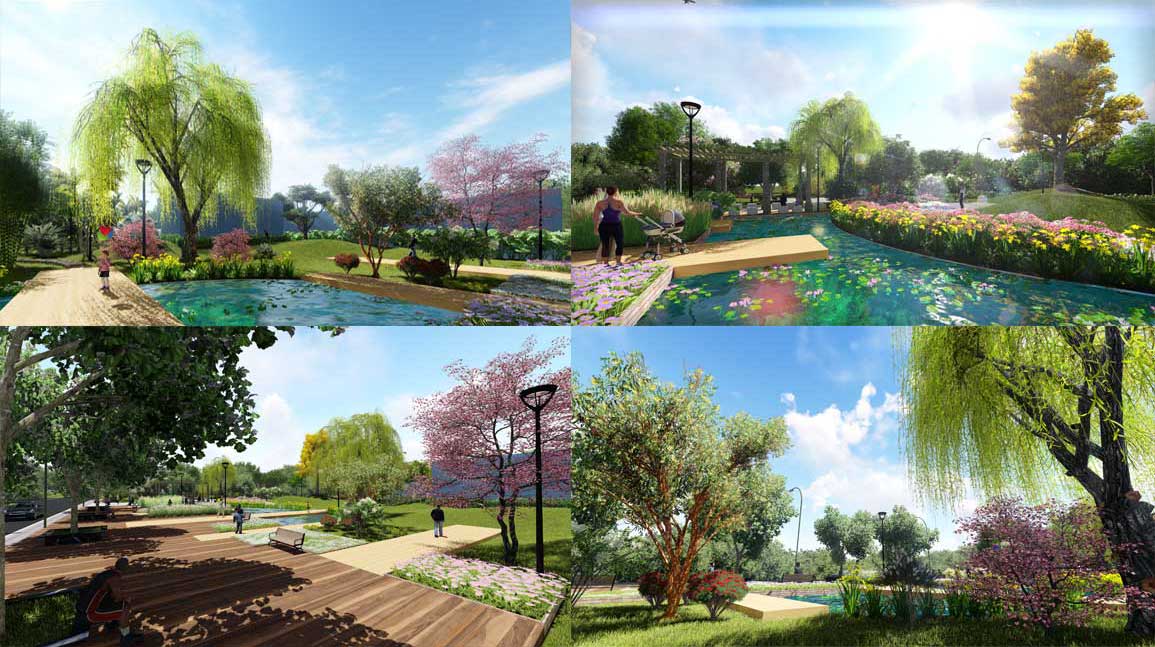 公园整体设计学习案例,园林景观中的 山、水、树的制作学习,静态效果图输出过程,动画制作流程的学习。
